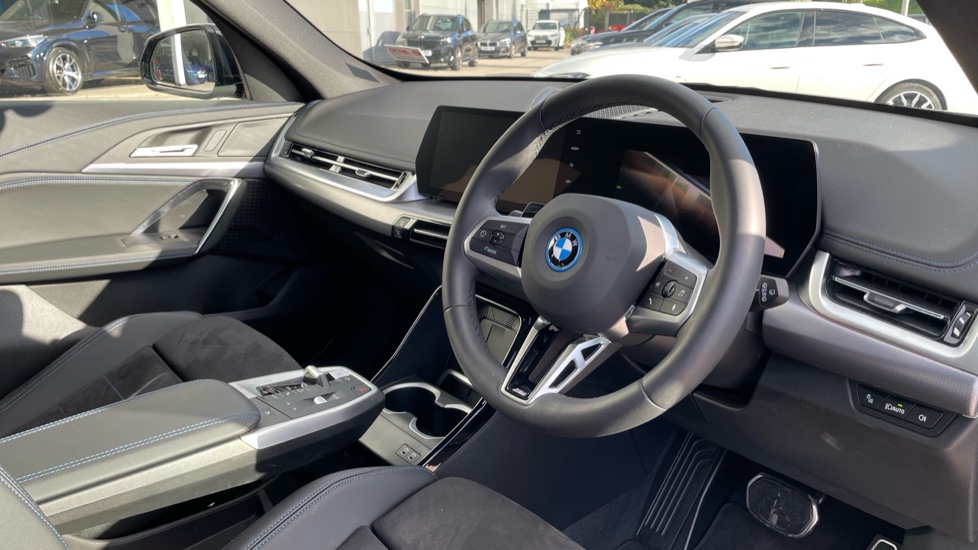This 2025 BMW iX1 20 M Sport is a superb example, having had only one owner from new. This electric vehicle boasts a substantial 67 kWh battery, offering an impressive maximum range of 287 miles when new. Charging is convenient, with a full charge at home using a 7kW charger taking approximately 9 hours and 10 minutes, while rapid public charging can replenish the battery from empty to 80% in just 33 minutes. Inside, you'll find a spacious boot, perfect for all your needs, and notable features include a Panoramic Glass Sunroof with opening functionality, a Parking Assistant complete with rear camera and rear sensors for effortless manoeuvring, and a Personal eSim for enhanced connectivity. The BMW iX1 20 M Sport excels with its blend of electric performance and premium features. The extensive electric range and rapid charging capabilities mean you can travel further and recharge quicker, setting it apart from many other electric vehicles. The inclusion of the Panoramic Glass Sunroof enhances the sense of space and light within the cabin, while the advanced Parking Assistant provides confidence when parking in tighter spots. These thoughtful additions, combined with the generous boot space, make this iX1 a practical and enjoyable choice for everyday driving and longer journeys.